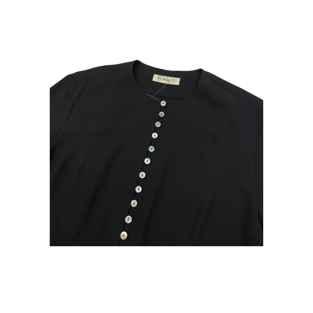 Sheer tunic with buttons down the middle.