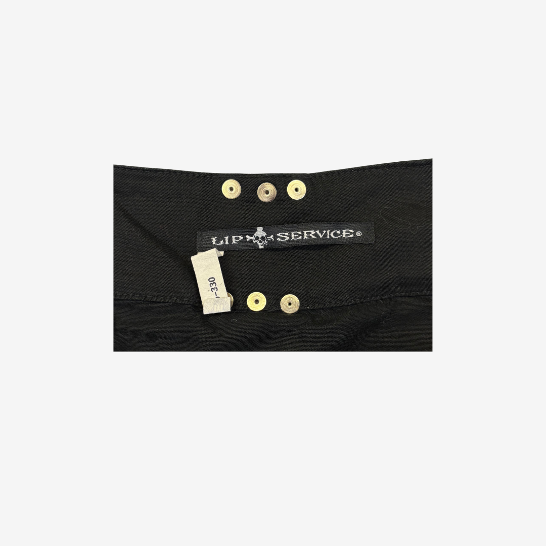 Lip service black mini skirt with pink plaid and silver hardware details.
